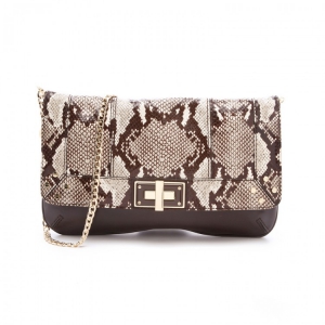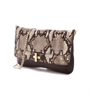 Лаковая сумка на регулируемой ручке-цепочке для ношения на плече. Отлетной клапан с застёжкой на кнопку.