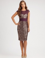 Модель выполнена из мягкого на ощупь материала. Детали: круглый вырез, потайная молния на спине, принт из искусственной кожи на лицевой стороне.